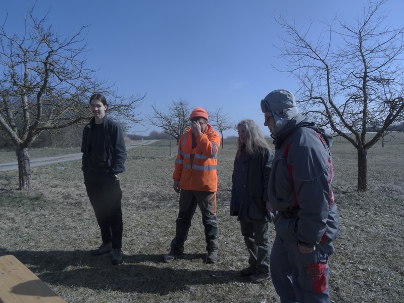Das Wetter war am 3. März 2018 nur morgens noch etwas frisch, aber schon sonnig, und bis zur Mittagszeit war es angenehm frühlingshaft warm und die ersten Bienen summten über die Wiese. Die Fachwartvereinigung hatte zum Winterschnitt ins Obstsortenmuseum Häsel bei Rutesheim eingeladen und zunächst acht Fachwarte fanden sich ein. Es sollte schwerpunktmäßig Kernobst geschnitten werden, der Fokus lag auf den Apfelbäumen.